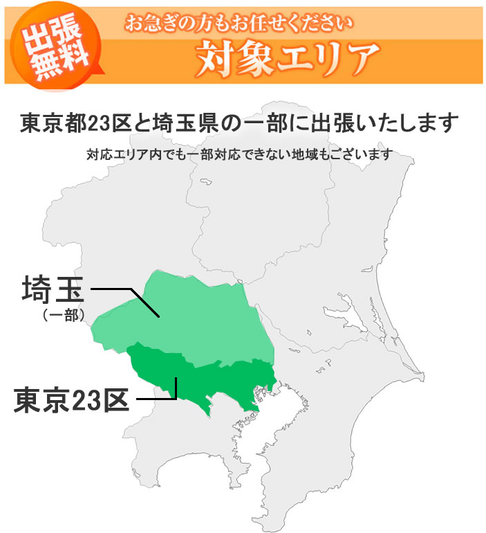 千代田区・中央区・港区・新宿区・文京区・台東区・墨田区・江東区・品川区・目黒区・大田区・世田谷区・渋谷区・中野区・杉並区・豊島区・北区・荒川区・板橋区・練馬区・足立区・葛飾区・江戸川区など23区全て対応いたします。